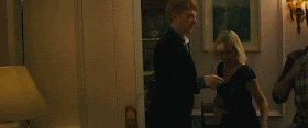 partner as Sugababes’ “Push the Button” plays in the background. The awkward dancing and troubled look on his